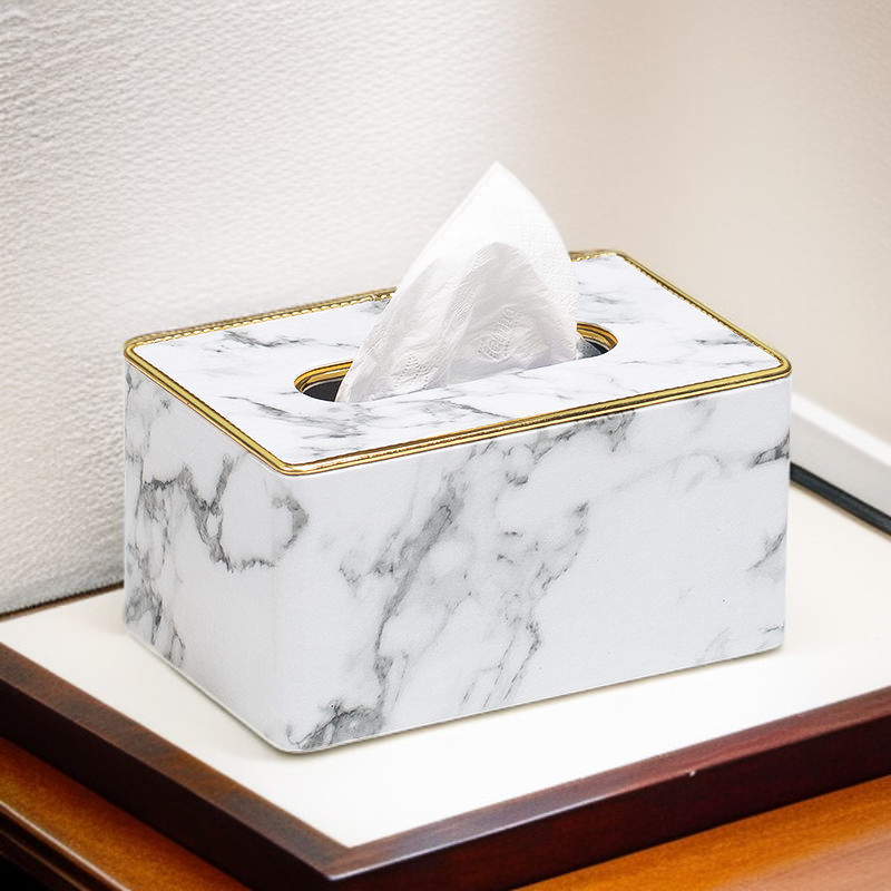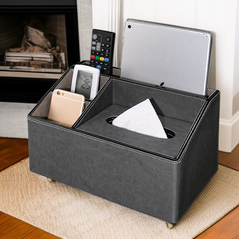 Una mesa de centro minimalista y lujosa para la sala de estar, que cuenta con una caja de pañuelos de cuero multifuncional para automóviles y uso doméstico.
