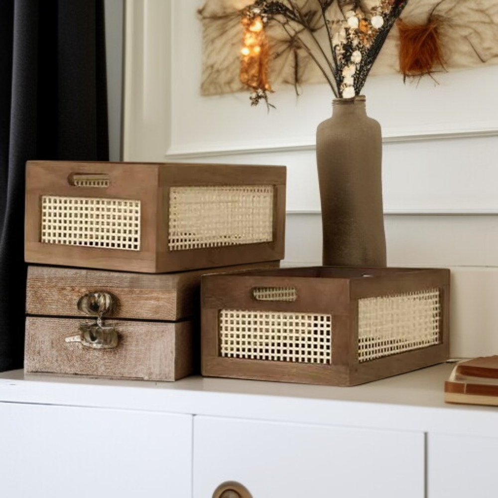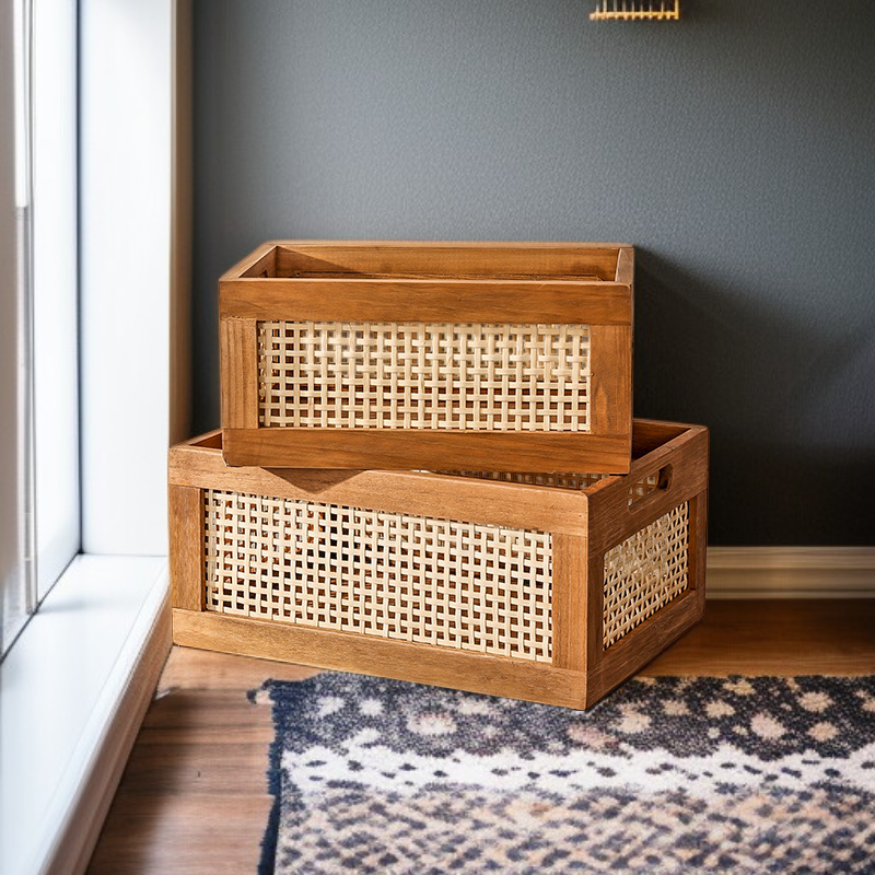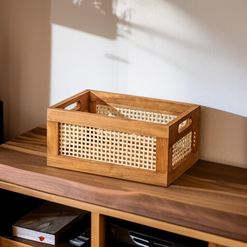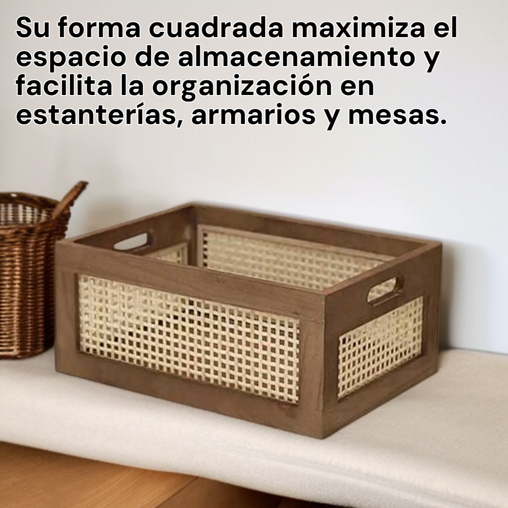 Cesta de ratán, cesta cuadrada de mimbre, caja organizadora de almacenamiento retro